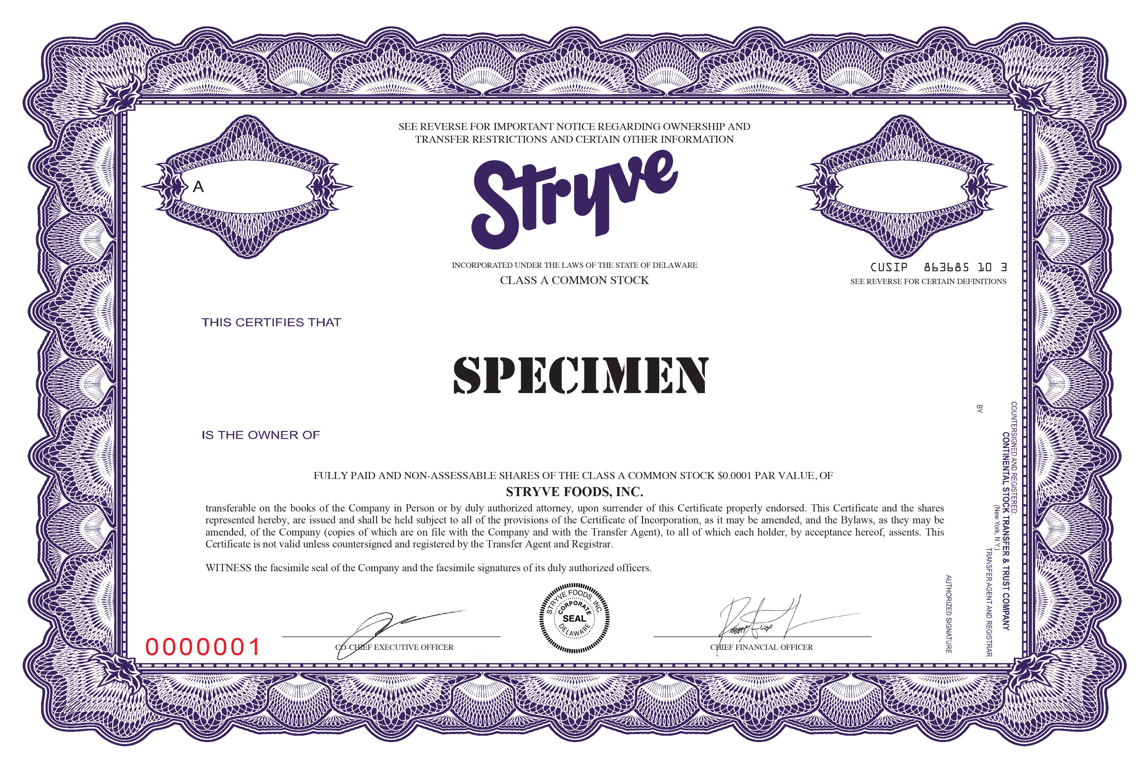 | Class A Common Stock | SNAX | The Nasdaq Stock Market LLC | ||